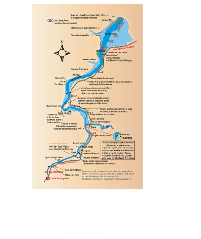 Extrait de Google Earth le document ci-après: le lit de la rivière Trieux complété avec quelques commentaires.