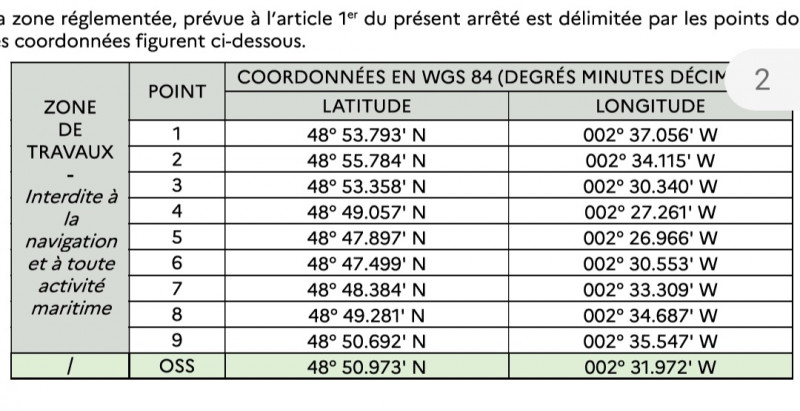 - Vous trouverez ci-dessous les coordonnées du parc éolien et donc les limites à ne pas franchir.